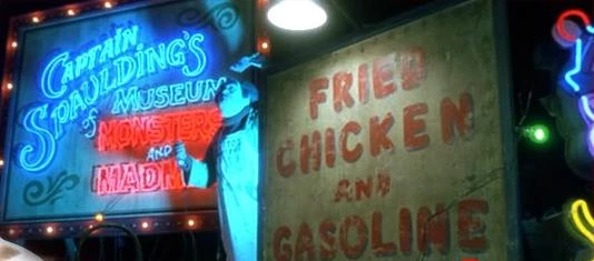 Captain Spaulding's Museum of Monsters and Madmen is a road side gas station, near Ruggsville, that doubles as an eatery and a Museum (complete with a ride, the Murder Ride). The former being bragged about for its famous fried chicken.